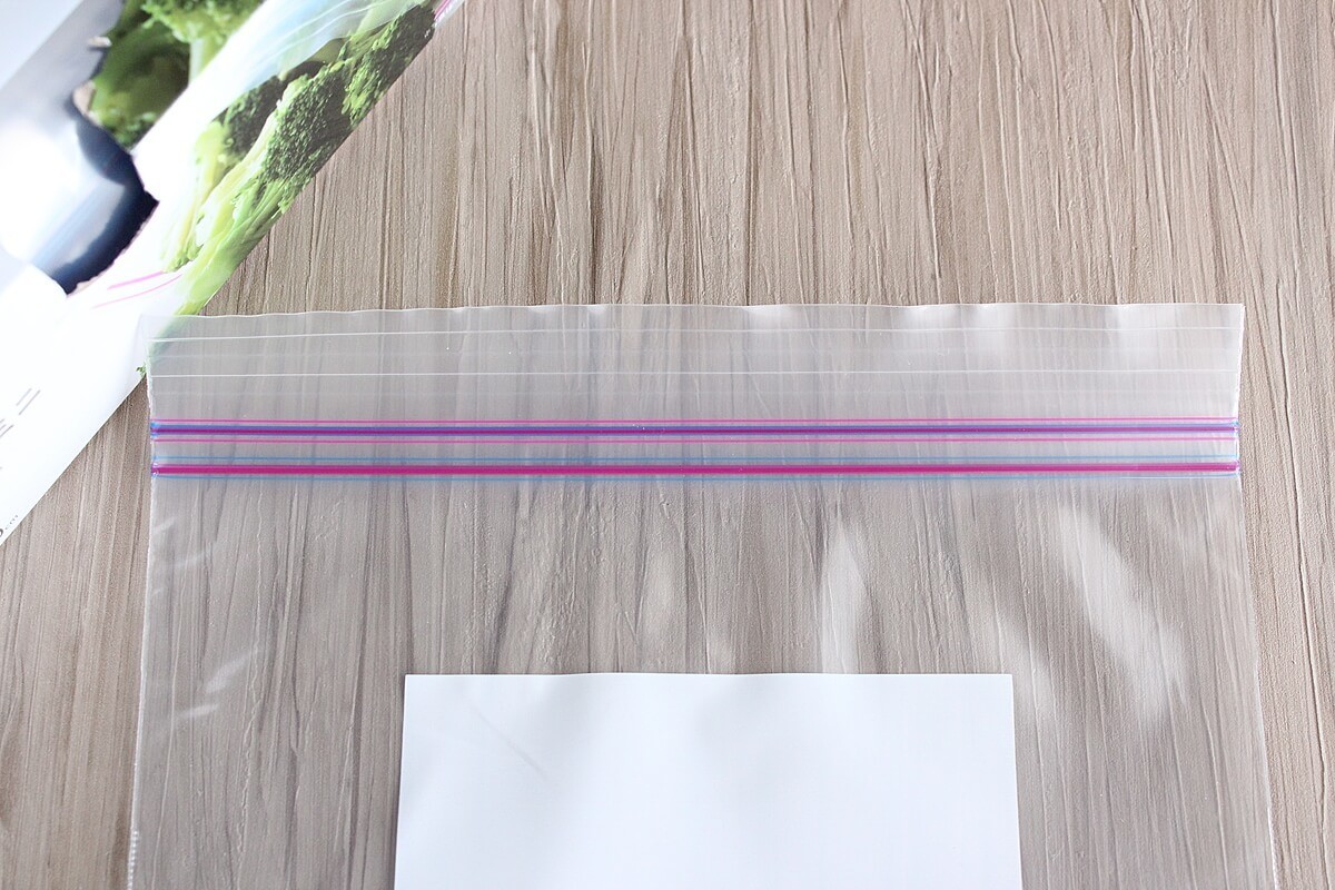 きちんとダブルジッパーをしめたことを確認したら、安心して横にして保存することができます。