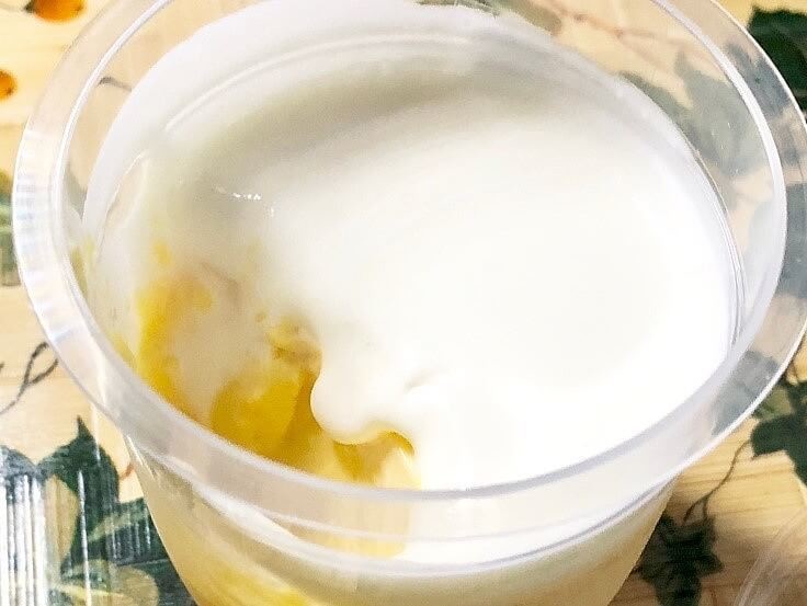 プレミアムプリンを形作るトッピングのクリームは、固められているわけではないので、激しく揺れるとカップ内がぐちゃぐちゃに混ざってしまいます。