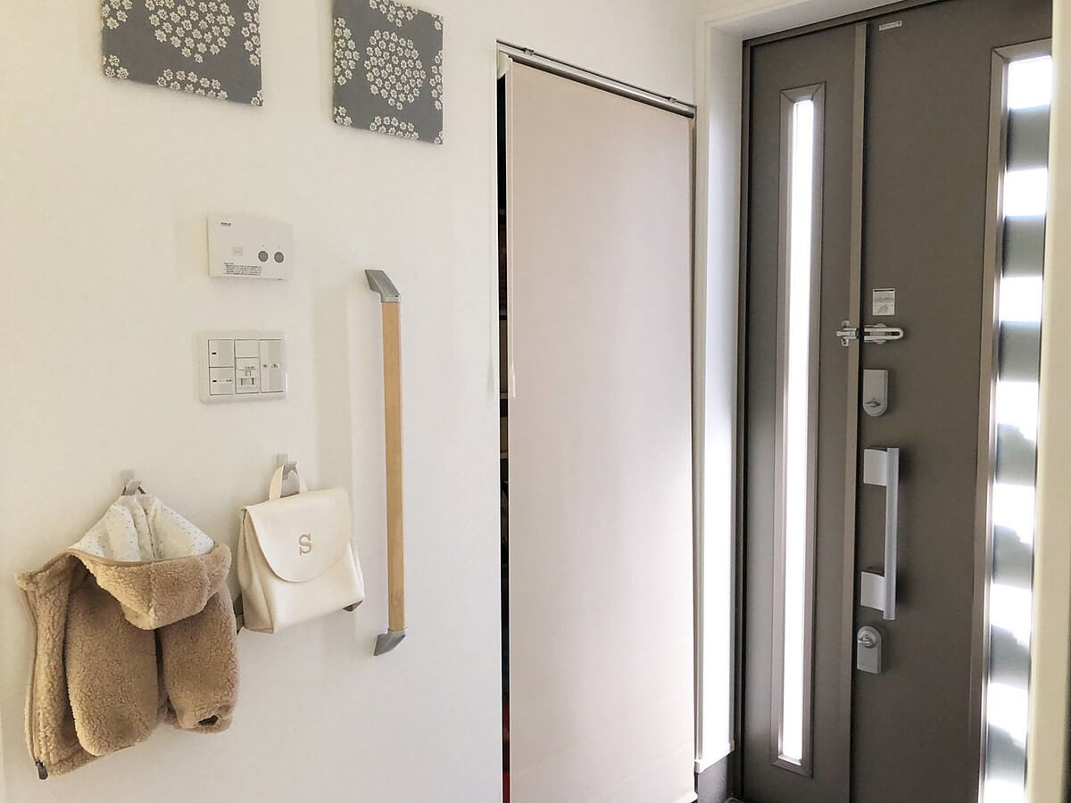フックの場所はLDKに入ってすぐの壁と玄関ホール壁の2箇所