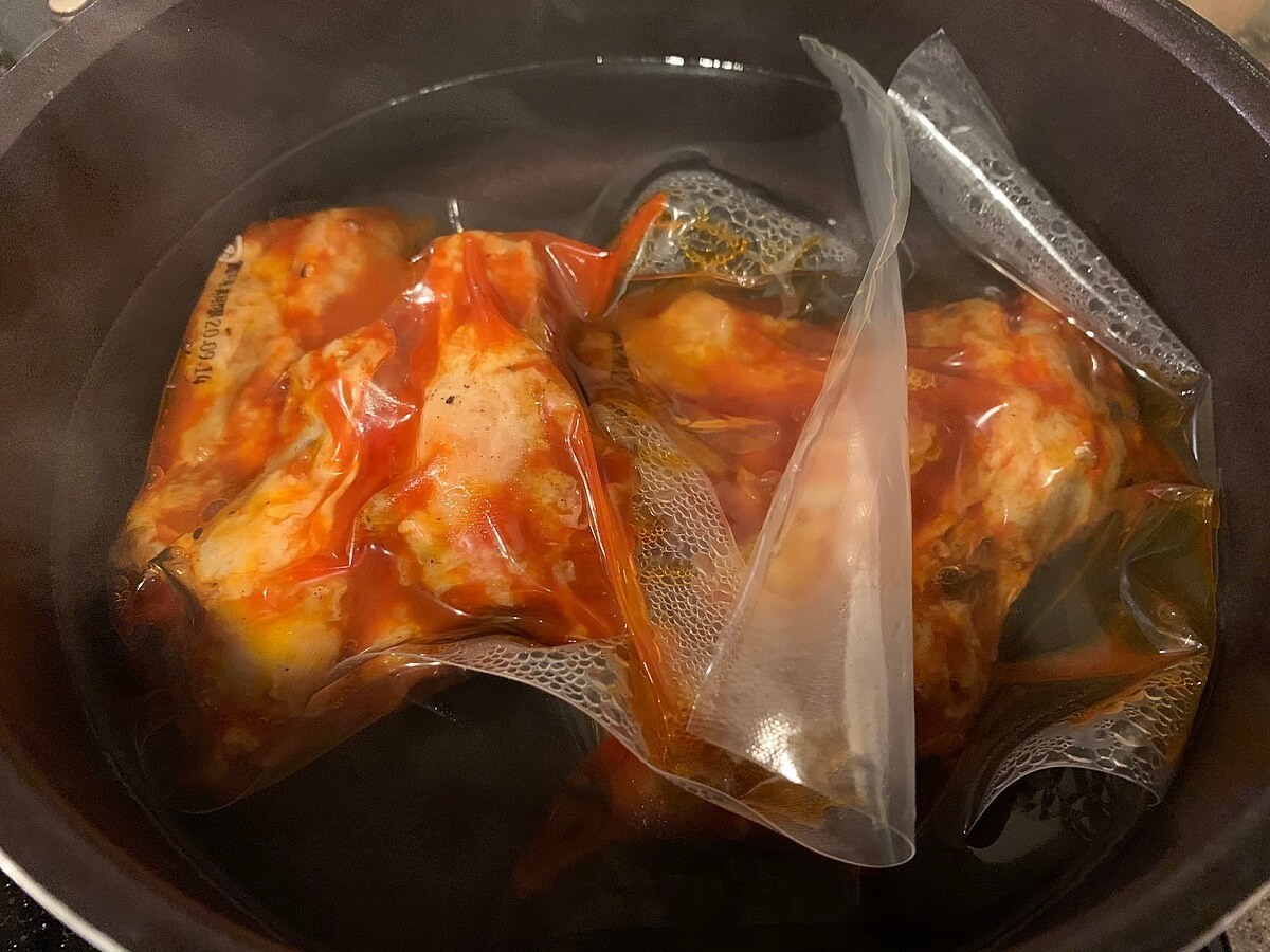 そこで、温めた「バッファローウィング」の骨を取り、パンにはさんでサンドイッチにしてみました。