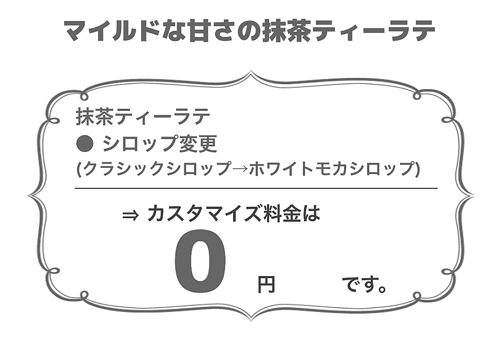 こちらは、抹茶ティーラテに使用されているシロップを“ホワイトモカシロップ”に変更したカスタマイズドリンク。