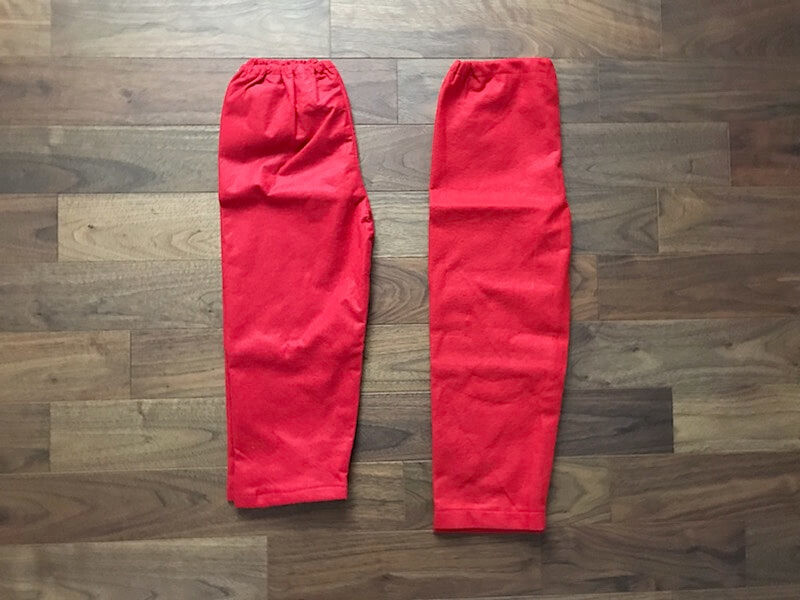一方のダイソーのズボンはゴムでなく紐だったので、ウエストが大きすぎて止めなくてはいけませんでした。
