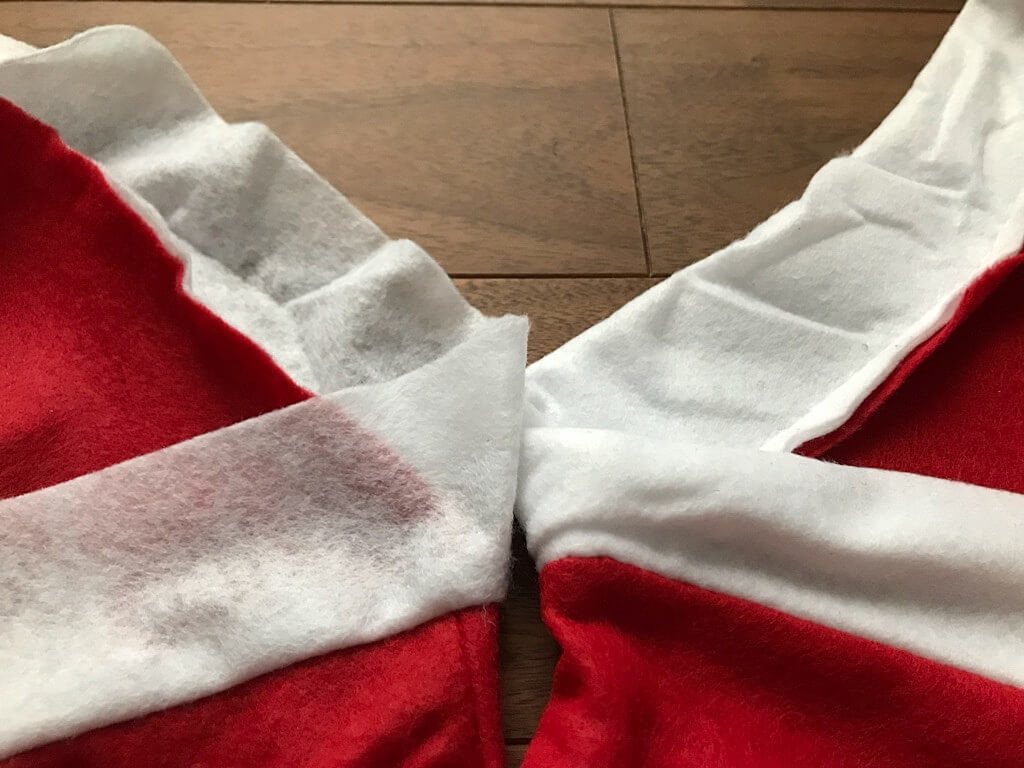 全体的にセリアのフェルトは薄めですが、見た目でいうと一番大差がなかったのはズボンかもしれません。