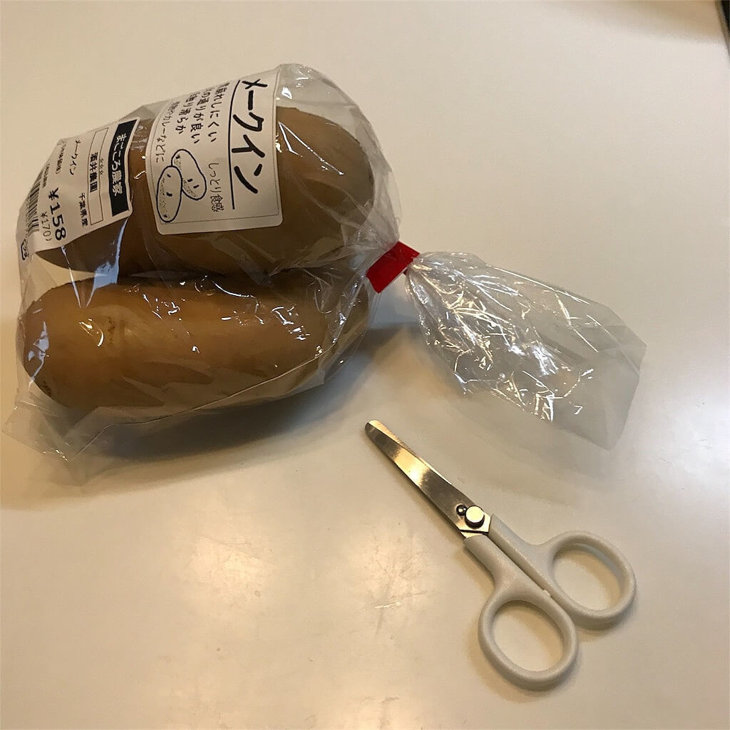 食品がビニール袋に入っていることが多いので、しかもピーマンとか口がテープで縛られていたりするのでこれでブチッっと。