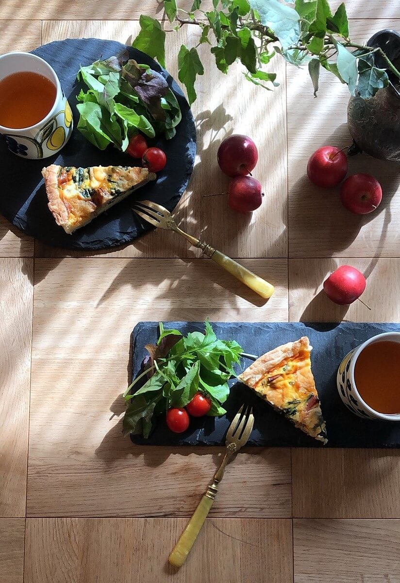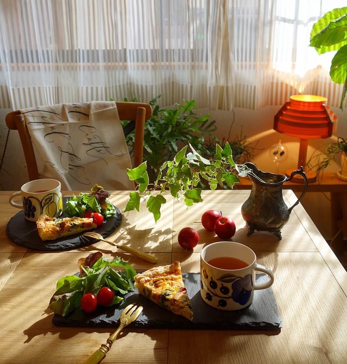 テーブルクロスをわざわざ敷かなくても、こんな何気ない休日のブランチ風景が、姫りんごをコロコロ転がすだけでなんだかオシャレに見えませんか(笑)。