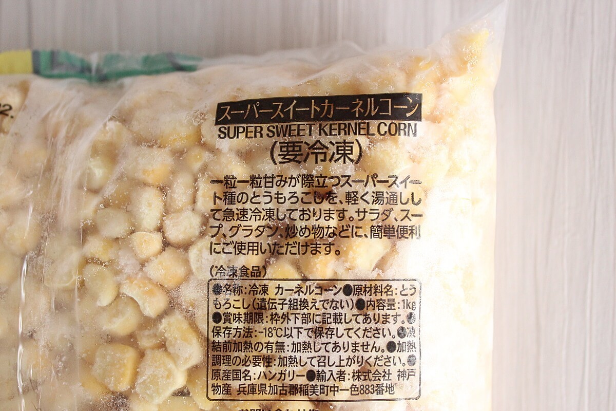 原材料をみると、塩なども一切入っておらず、トウモロコシをさっとゆでてそのまま急速冷凍したものとわかります。