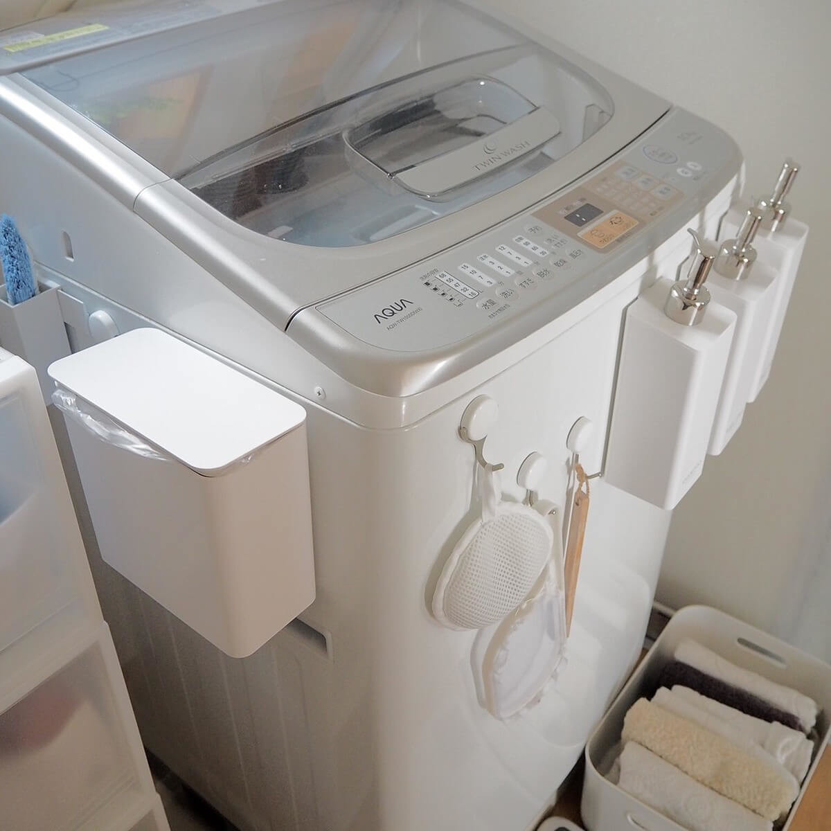 また、シャンプーボトル類もマグネットで本体がくっ付く仕組みになっているので、普段は洗濯機にくっ付けておいて、使う時だけ隣のお風呂場へ持ち込んでいます。