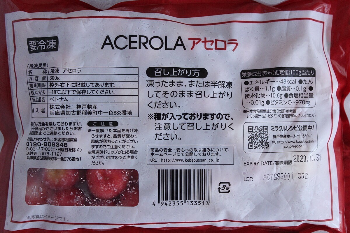 アセロラの冷凍品は、なかなか普通のスーパーでは見かけないものだと思います。