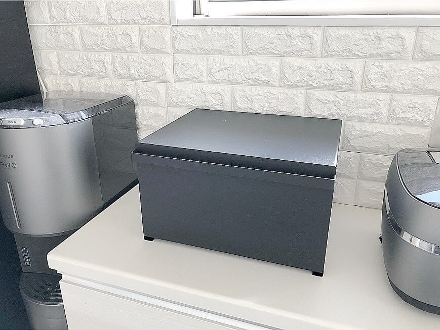 インテリアに馴染むマットブラックがかっこいいデザイン。大容量なのでパンはもちろん、紅茶や食べ残しおやつも出しっ放しにならずにささっとしまえちゃいます。