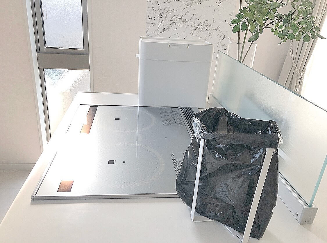 生ゴミ、臭いのするゴミはこのポリ袋ホルダーに黒いゴミ袋を引っ掛け使っています。