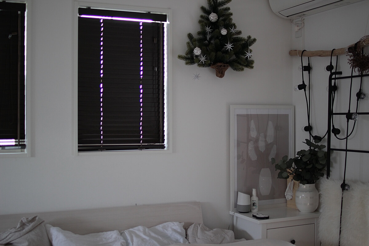 家族しか過ごさない寝室には片付けも楽な壁掛けツリー