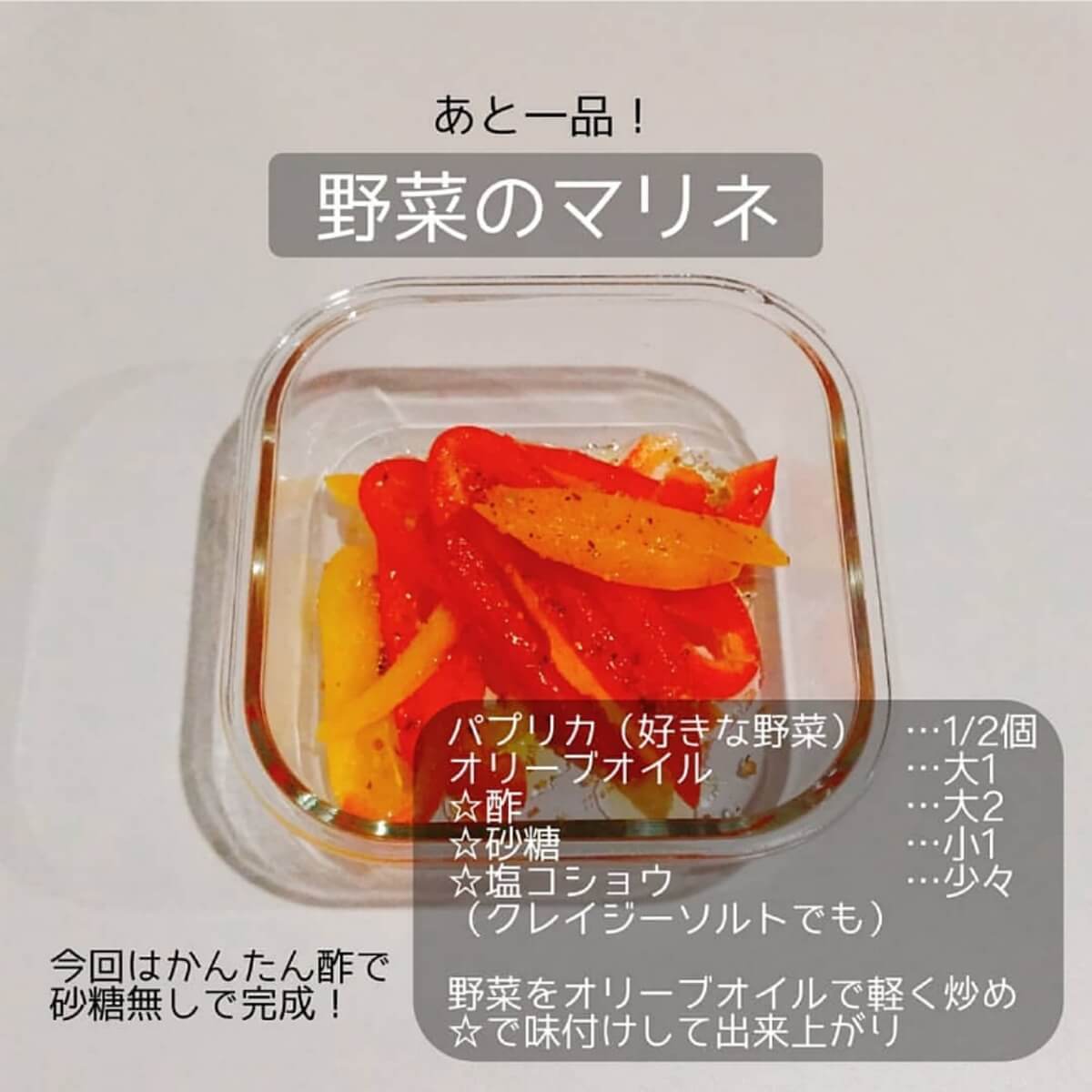 日持ちもするので、週末作り置きをした時など、あまり野菜でついでに作っておくと、平日の食卓をにぎやかにしてくれます。