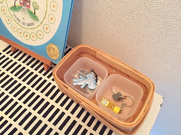 以前は、玄関の靴箱の上にカゴを置いて、その中に鍵を入れていました。