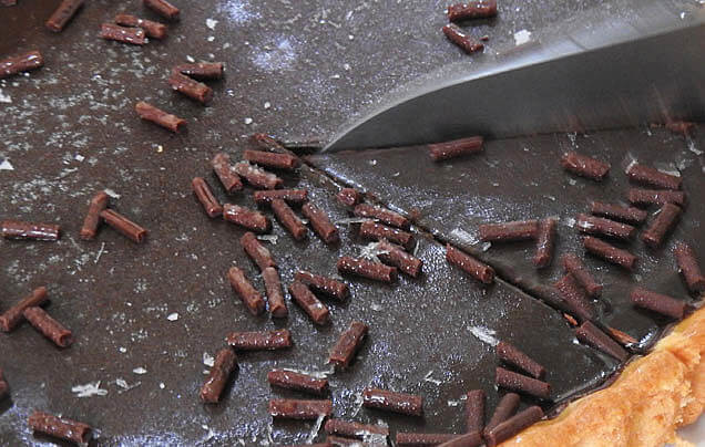 ただし、チョコレートタルトをカットするのはかなり大変……。そんな時は、包丁の刃先を熱湯で温めておくと、わりとスムーズにチョコレートタルトが切れますのでお試しください。