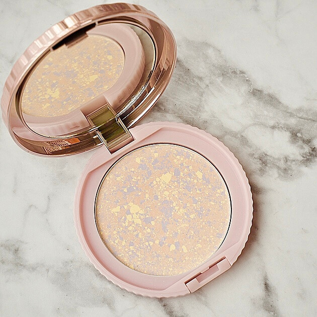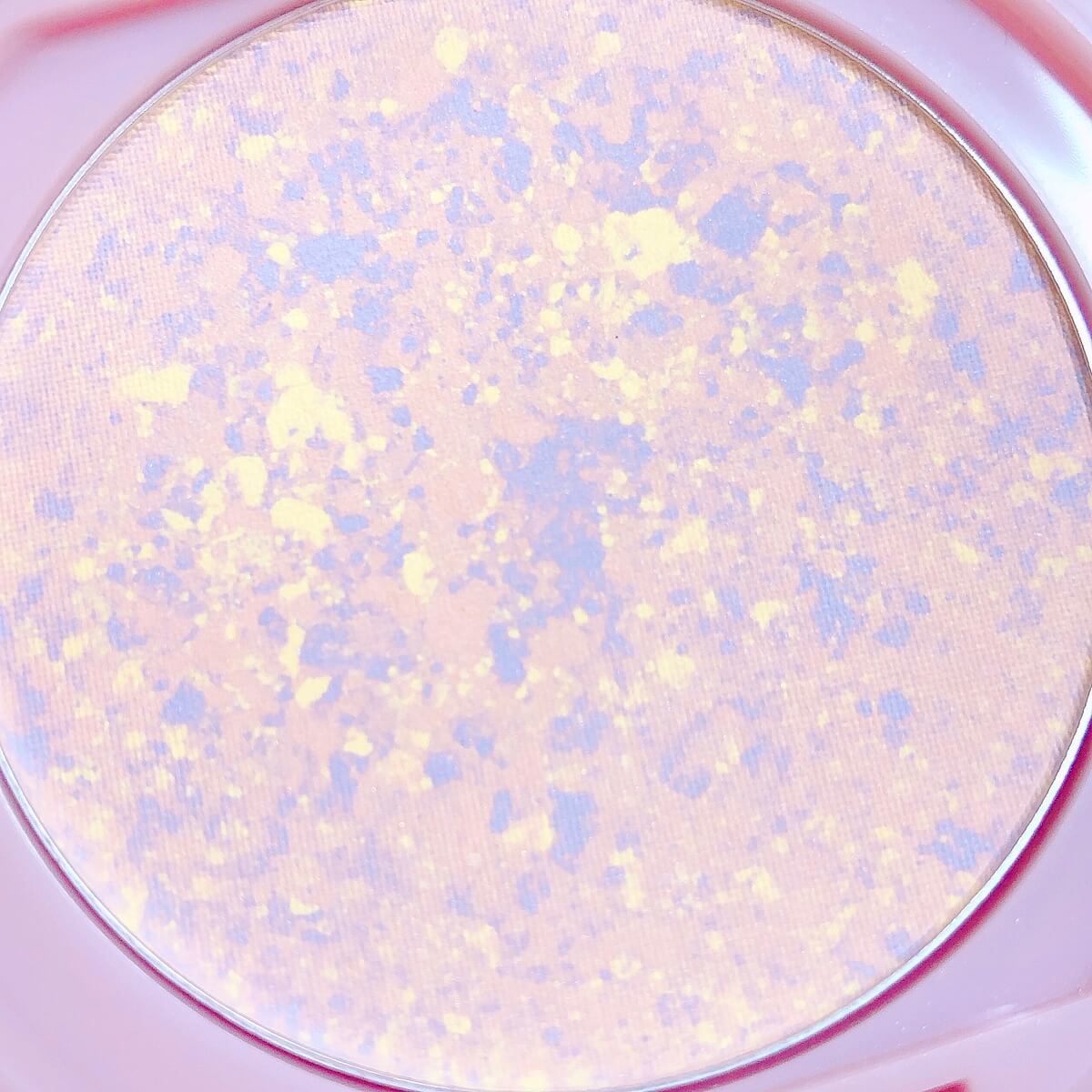パープル、ピンク、イエローのパウダーが、マーブル状にプレスされているこのパウダー。