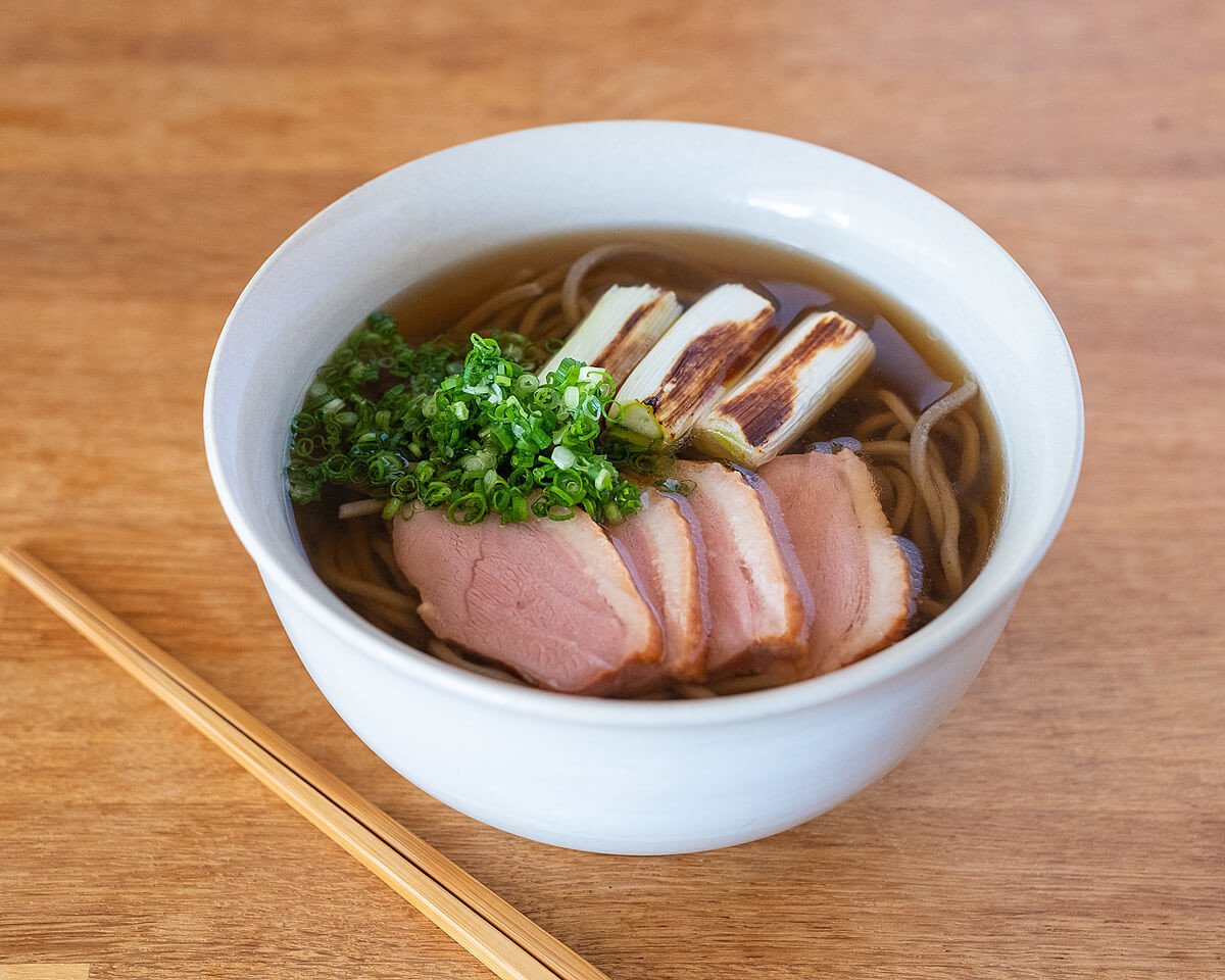 鴨肉からほどよく肉汁がでて、つゆもさらにおいしくなります。
