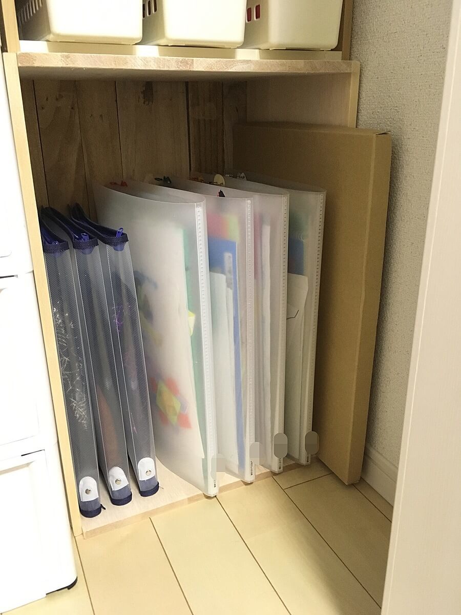 100均のファイルは、書類だけでなく、出番の少ない物の収納にも最適。