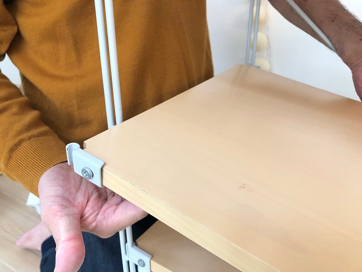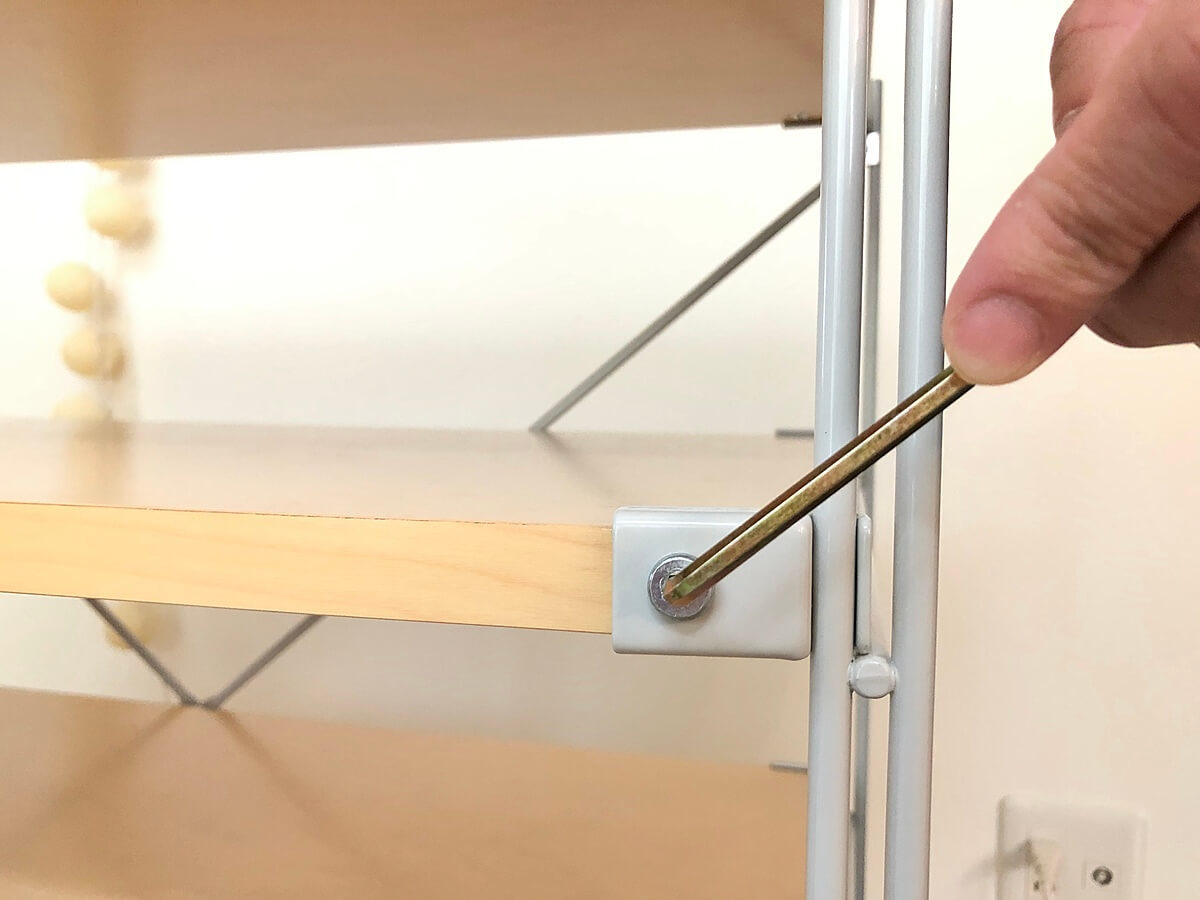 「組み立てる」といっても、少し斜めにしながら追加したい箇所に棚板を入れ、四隅をドライバーで締めるだけ!
