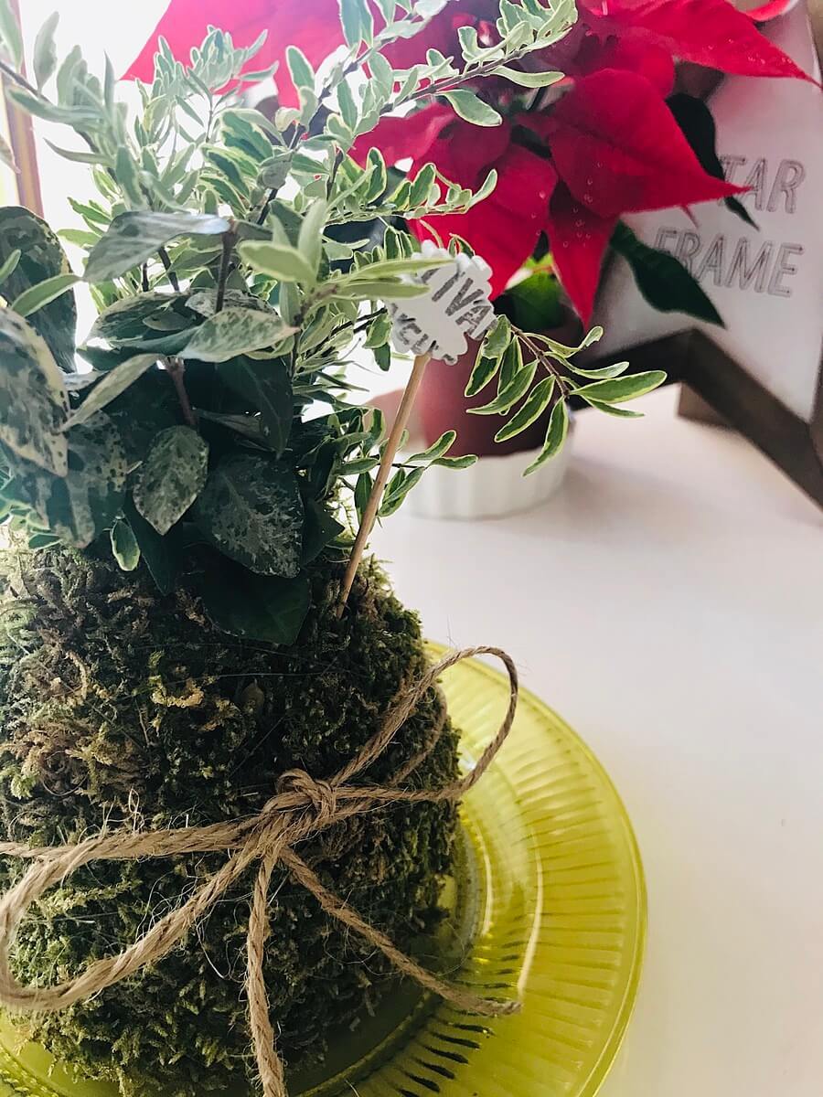 ちょっとわかりづらいですが、さりげないワンポイントでお気に入りです!ちなみに、この苔玉は自作なので余計に愛着があるんです……笑。