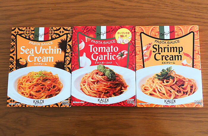 今回はカルディオリジナルパスタソース「ウニクリーム」「トマトガーリック」「エビクリーム」をご紹介します!