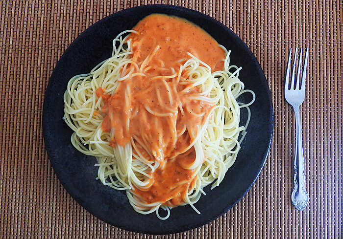 クリーミーなパスタソースは、4歳と2歳の胃袋を鷲掴みしていました。4歳の息子は「ごはんをちょうだい」といって、パスタソースをごはんの上にかけて食べてご満悦でした。