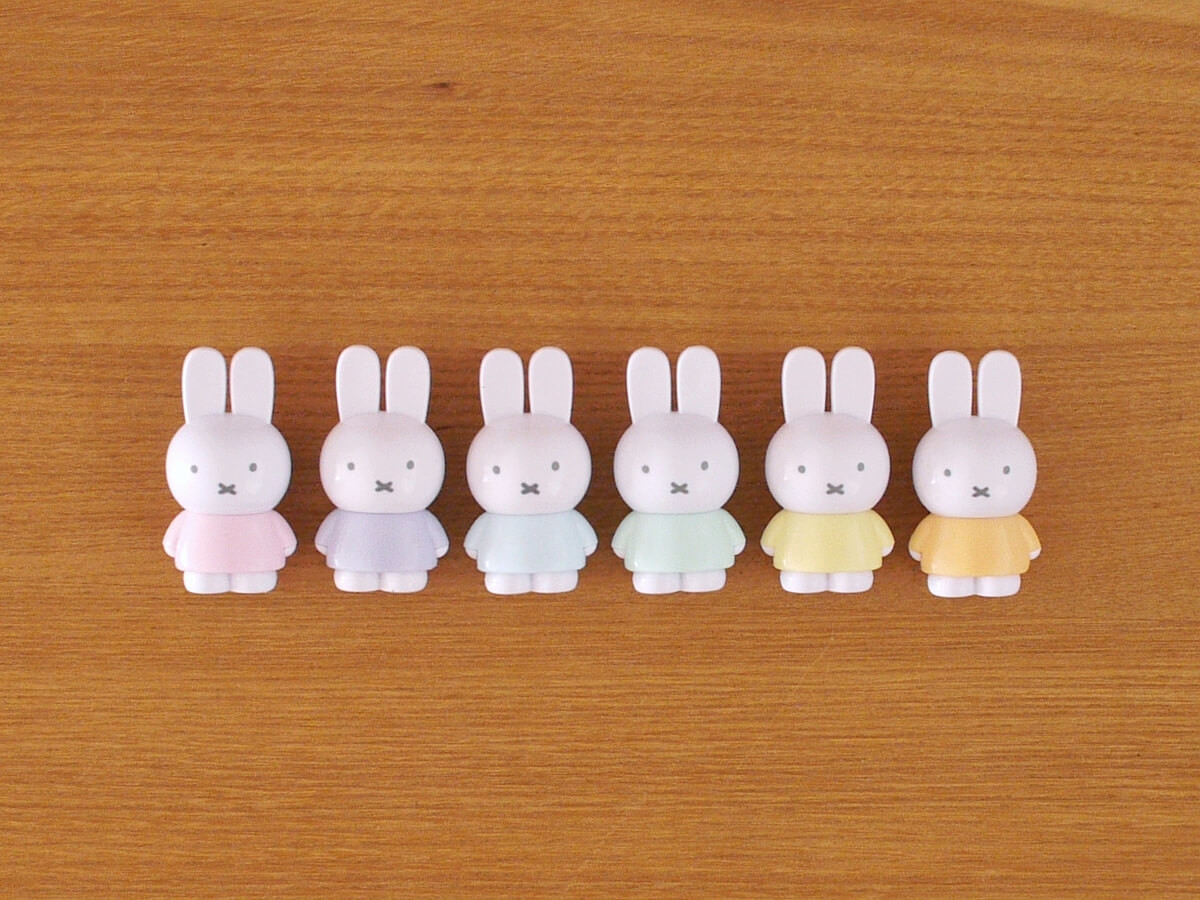 パステルは、Babyカラーの全6色です。パステルカラーの優しい色が揃っていて、ミッフィーのお顔も黒ではなくグレーで描かれています。