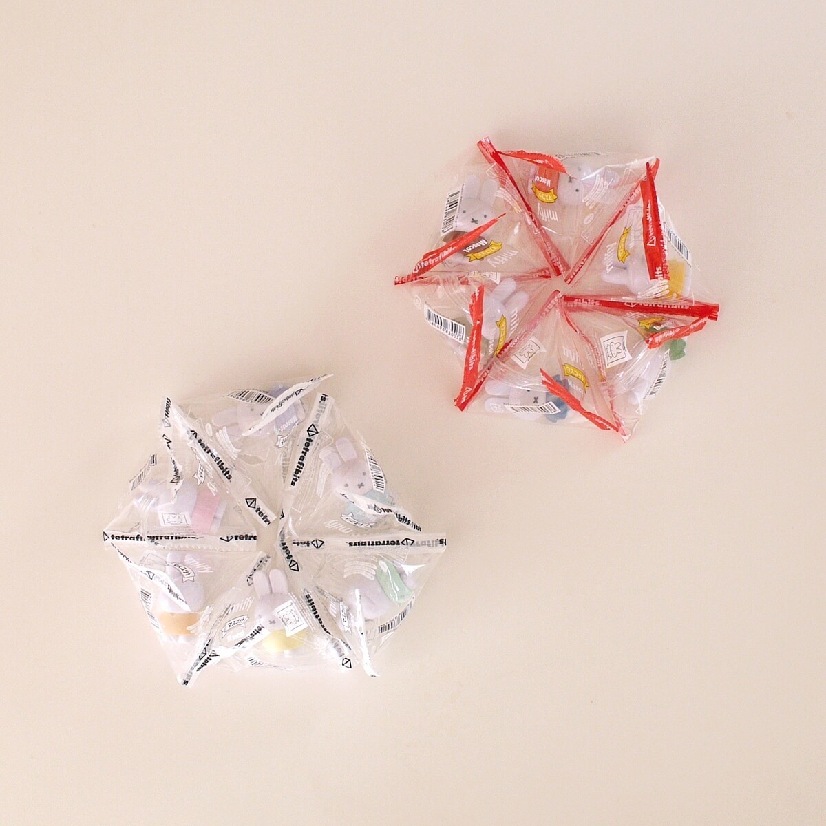 ミッフィーのテトラフィビッツは、三角形の立体的なパッケージに入っています。