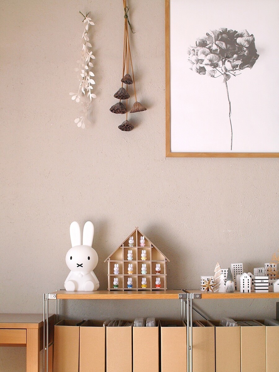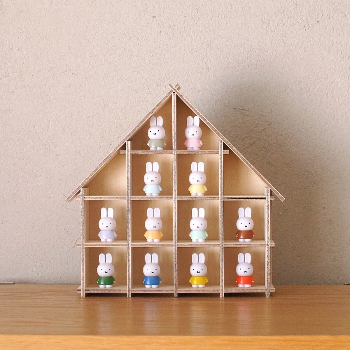 ウチにあったおウチ型の棚に小さなミッフィー達を飾ってみたら、サイズも個数もビックリするくらいピッタリ!