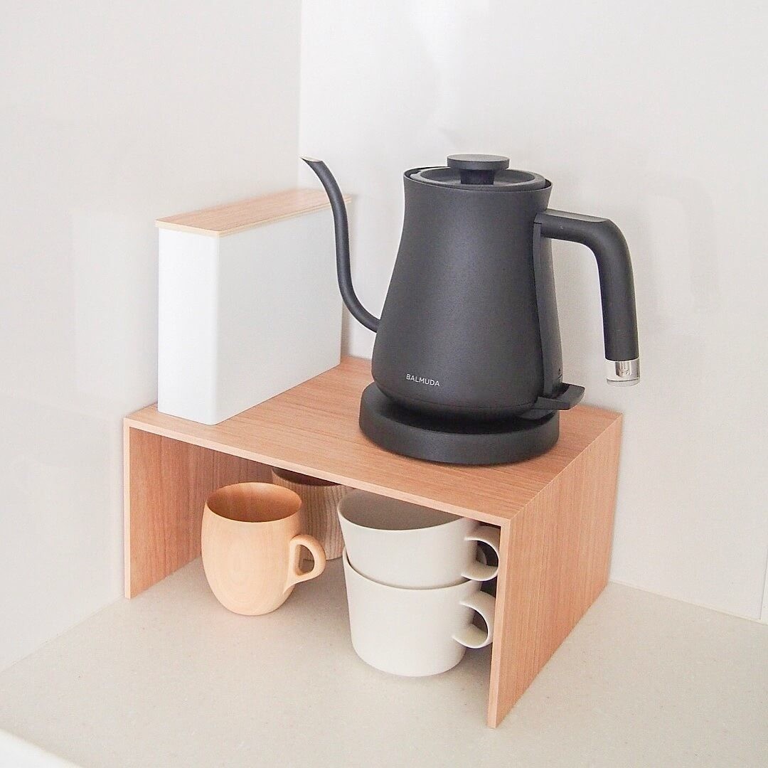 コンパクトなのに耐荷重4kgなのでケトルなどをちょっと重いものを置いても大丈夫なんです。