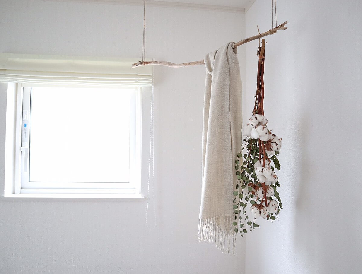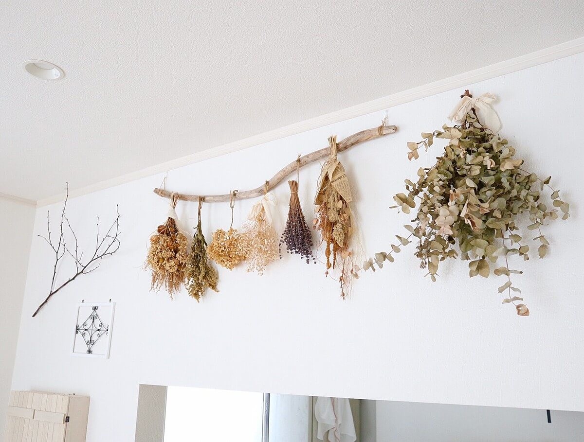 ナチュラルな雰囲気を作ってくれる流木にドライフラワーはピッタリ。流木にドライフラワーを並べて吊すだけで一気にオシャレ感が増します♪