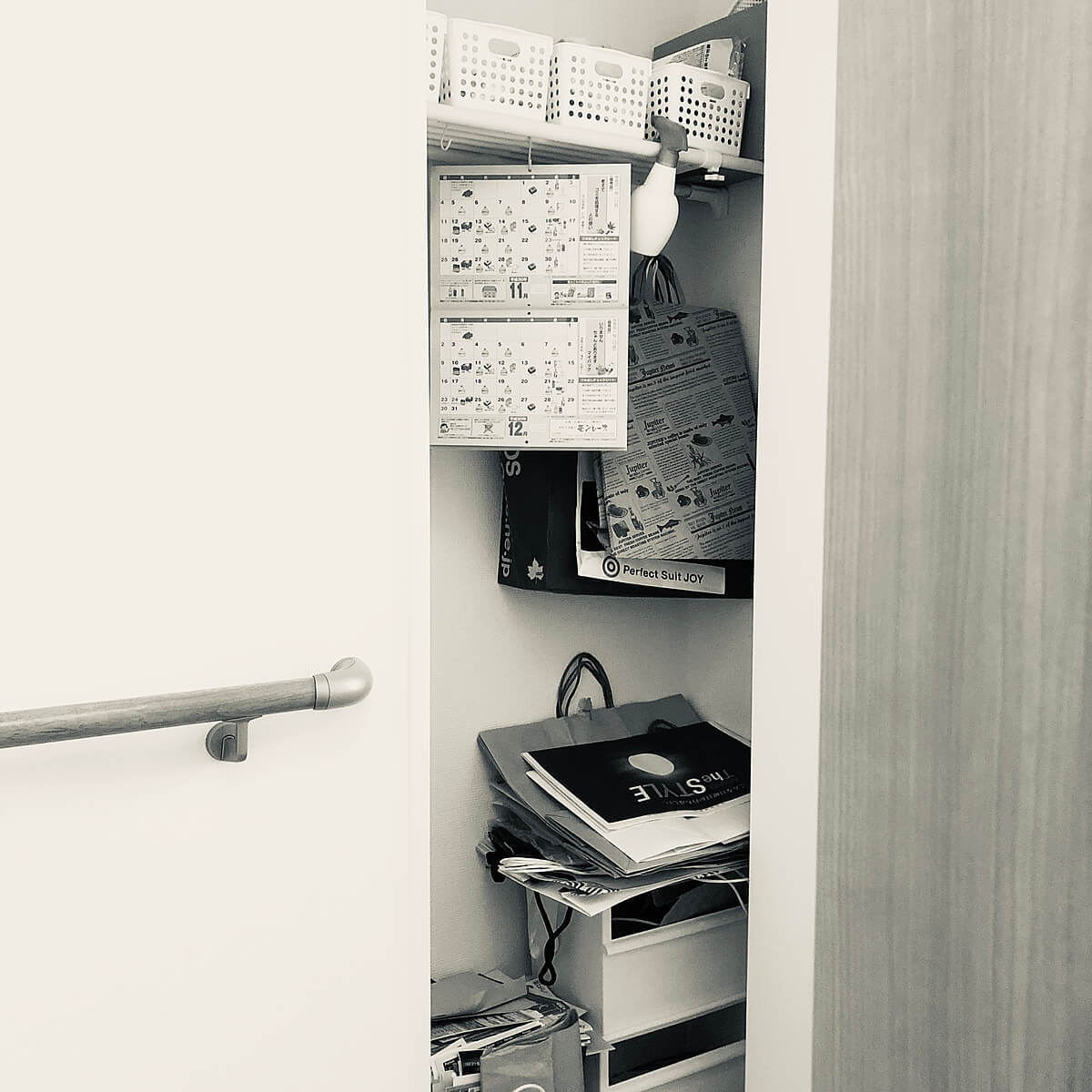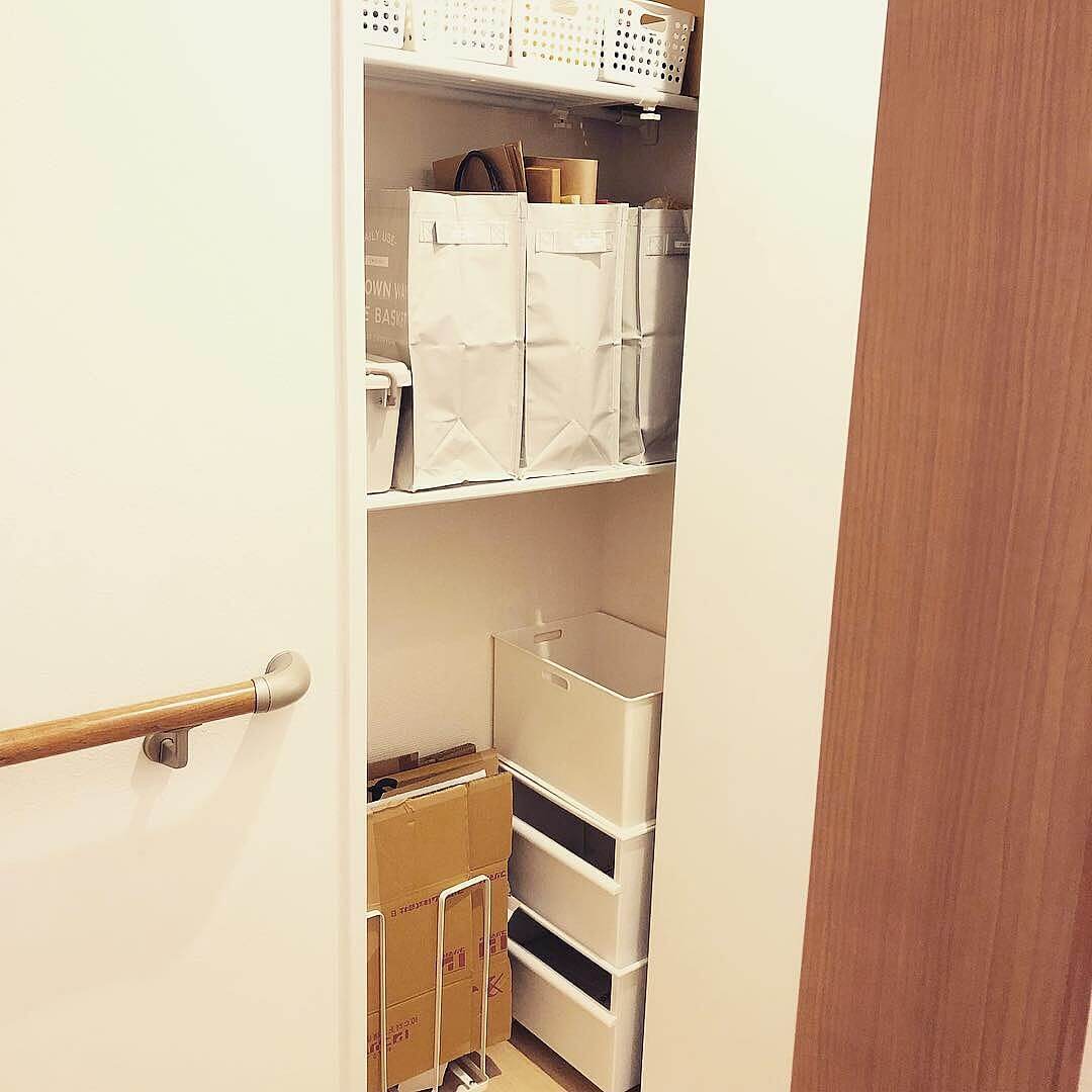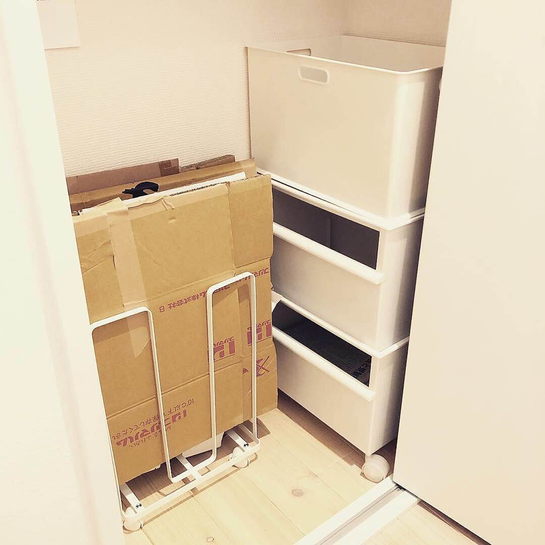 もともと使用していた物と新たに購入した物を組み合わせて、ダンボールと古紙専用の納戸が完成しました。