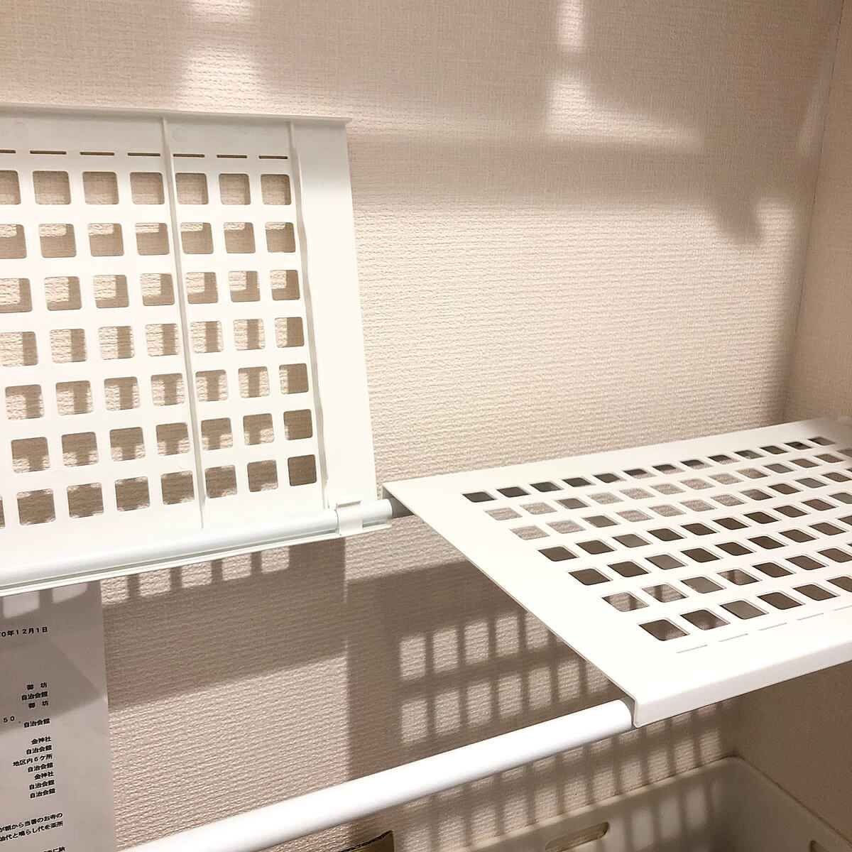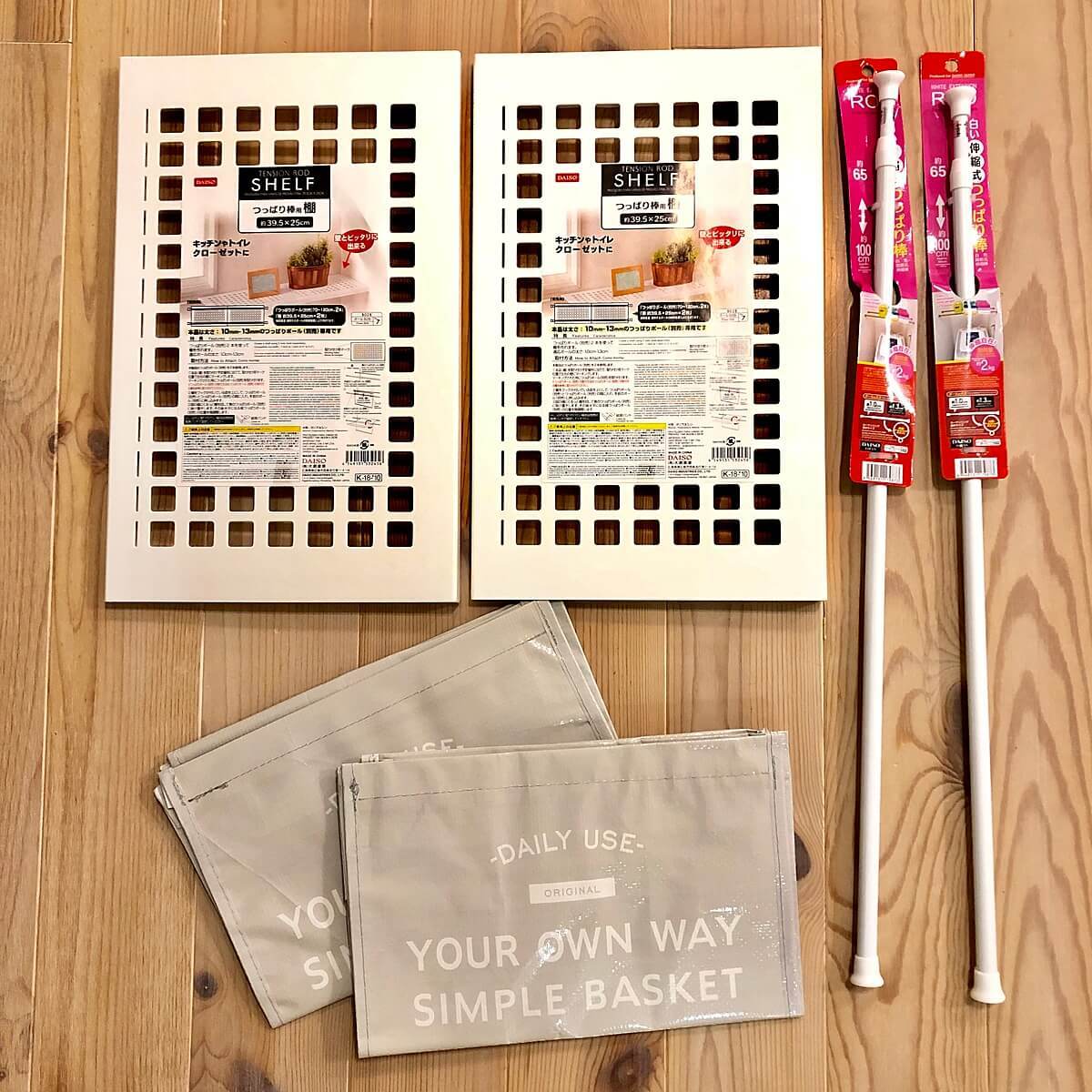 空間を仕切るために、ダイソーで突っ張り棒2本と突っ張り棒用の『棚』を2枚購入しました!