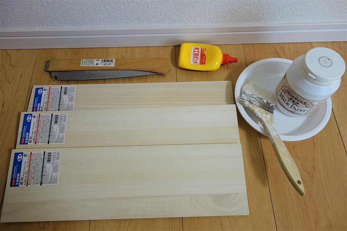 - ダイソーの板材(約40㎝×0.9㎝×12㎝)×3
