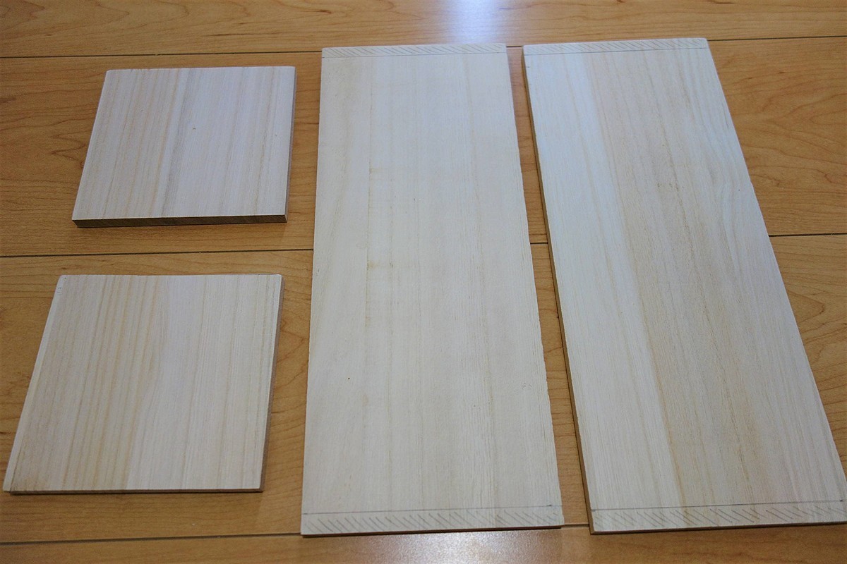 左の2枚は側板、右の2枚は底板と天板になります。