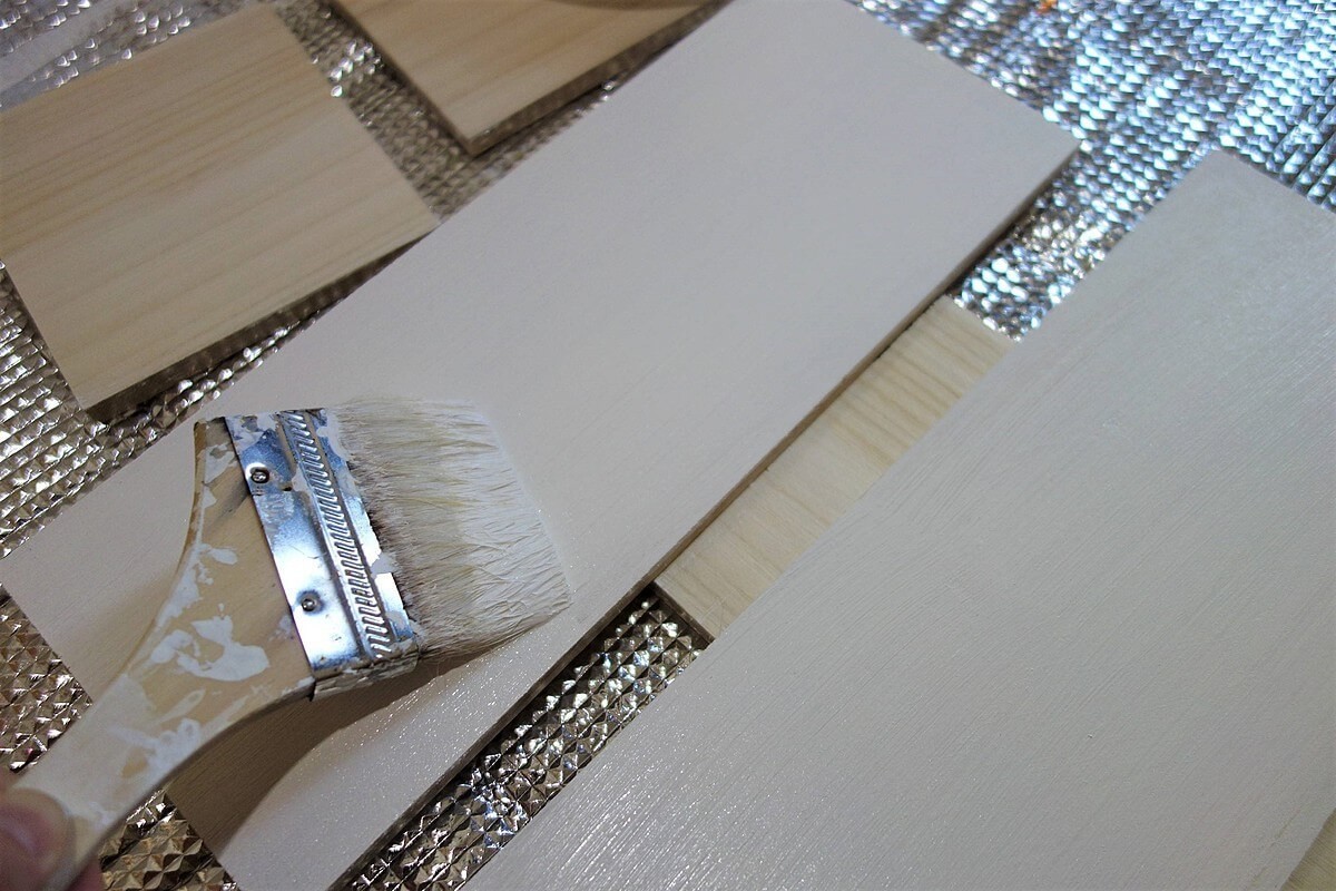サンドペーパーで磨いてささくれを取ったら、ミルクペイントで手寧にペイントしていきます。