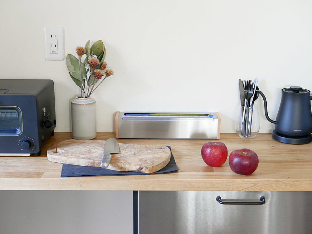 ラップを引き出した時の安定感もあり、キッチンのカップボードや作業台を傷つけずに使用することが出来ます。