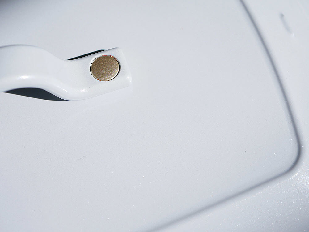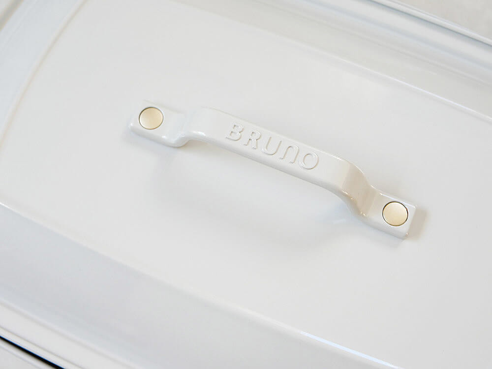 「BRUNO」のロゴがデザインされた持ち手は、グランデサイズに合わせて握りやすい形。シンプルなフォルムのアクセントにもなっています。