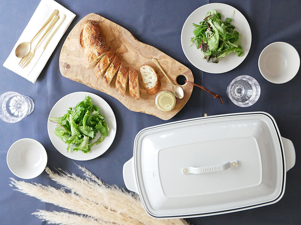 「焼く」はもちろん、フタを使って「蒸す」もおしゃれにこなすブルーノ「ホットプレートグランデ」のシーズン限定ギフトのご紹介です。