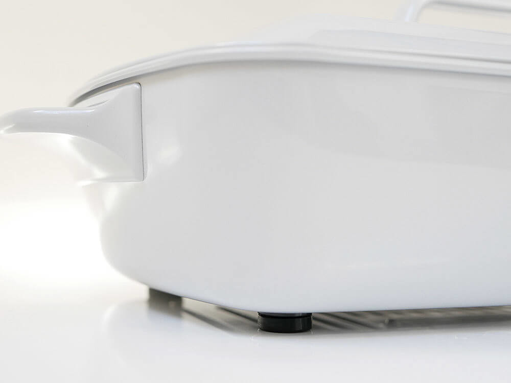スリムな長方形の本体はテーブルに収まりやすく、プレートの周りにお皿やグラスも置きやすくて使い勝手も◎です。