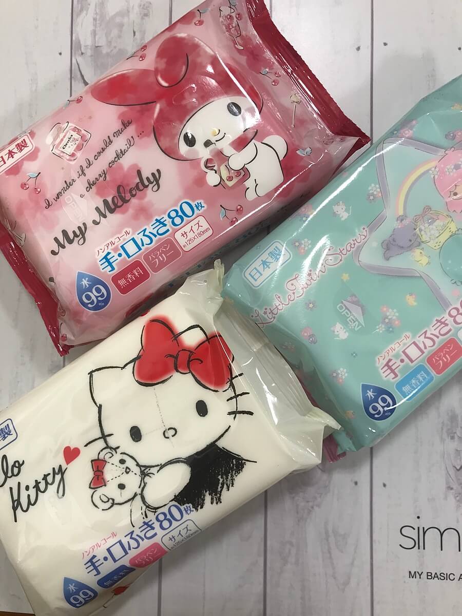 サンリオで有名なキャラクター達が描かれたウェットティッシュ。