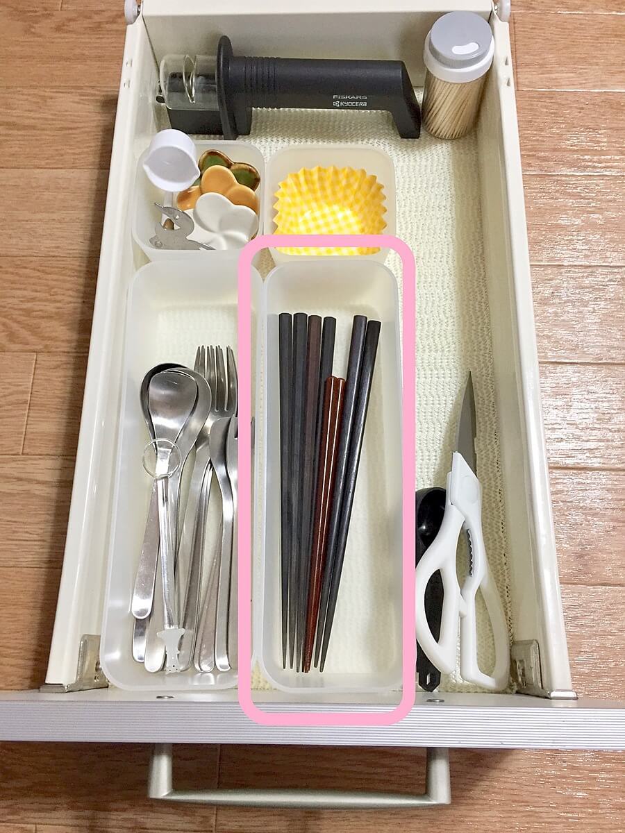 そうすると、毎日のお箸を出すときにお箸の種類を見て選ぶ手間がなくなります。たったそれだけのことですごく楽になりました。