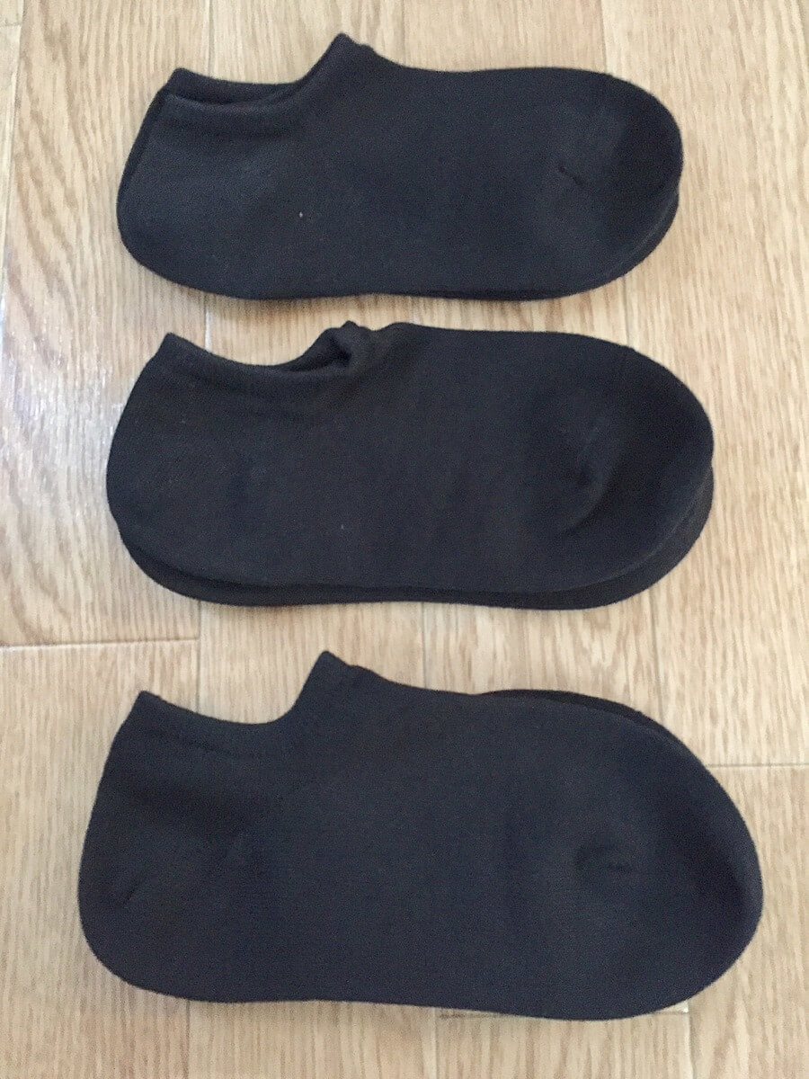 最後は同じアイテムを使う工夫です。 この夏から毎日履く靴下を、無印良品の黒いソックスで統一したら、何かと便利なことを実感。