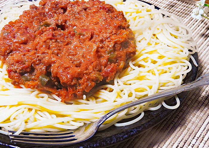夫はどどーんとパスタの上にミートソースをかけて大満足していましたね。上記レシピの分量で作った場合、わりとドロドロとしたミートソースが出来上がります。パスタとよく絡み合って美味しくいただけました。