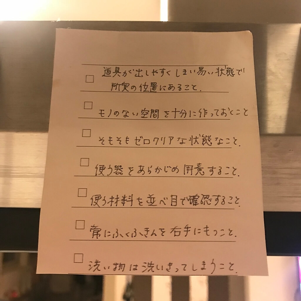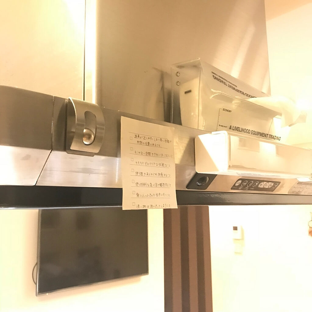 いつもきれいにしたいと、このメモを換気扇のところに貼りつけていますが、なかなか完璧には出来ません。