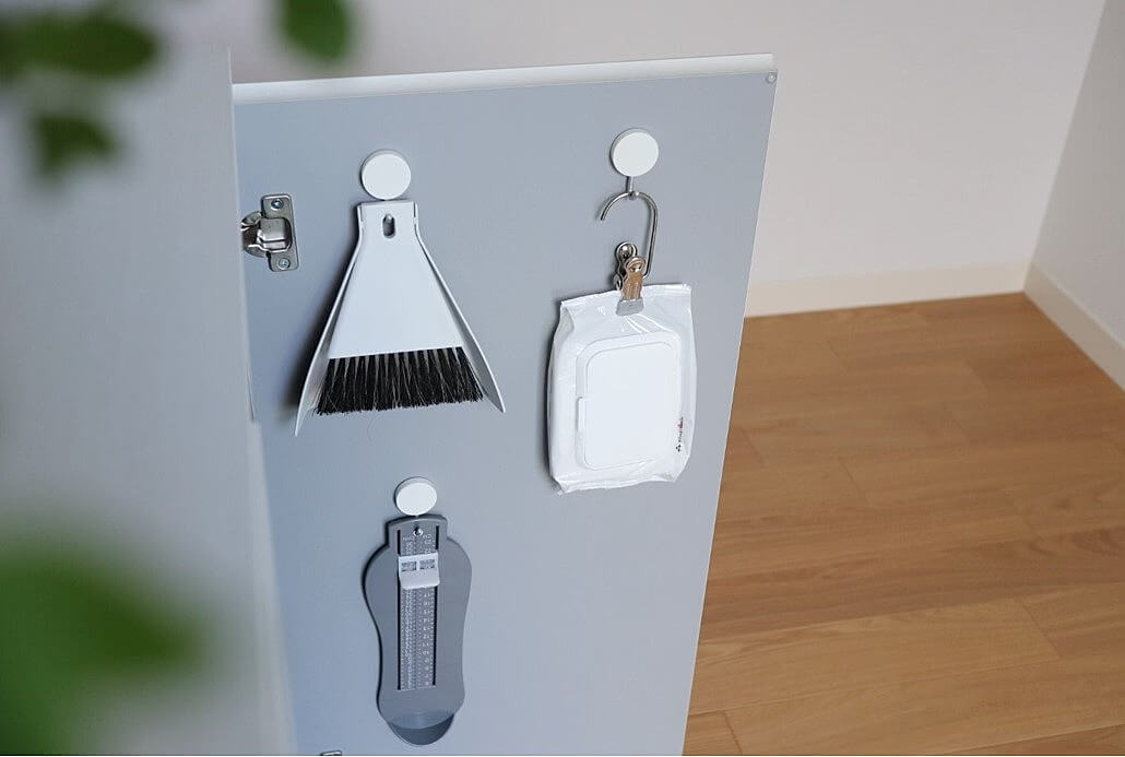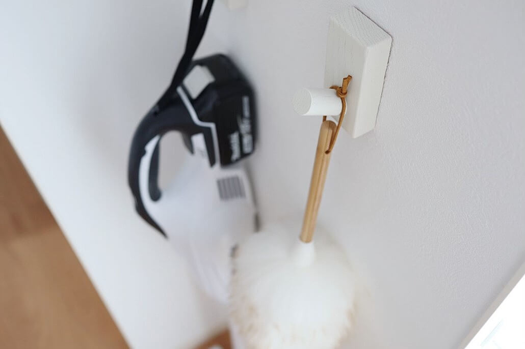 わざわざ道具を取りにいくのは面倒に感じていまいますが、掃除道具がすぐに手に取れることで掃除をするということのハードルをぐっと下げてくれています。