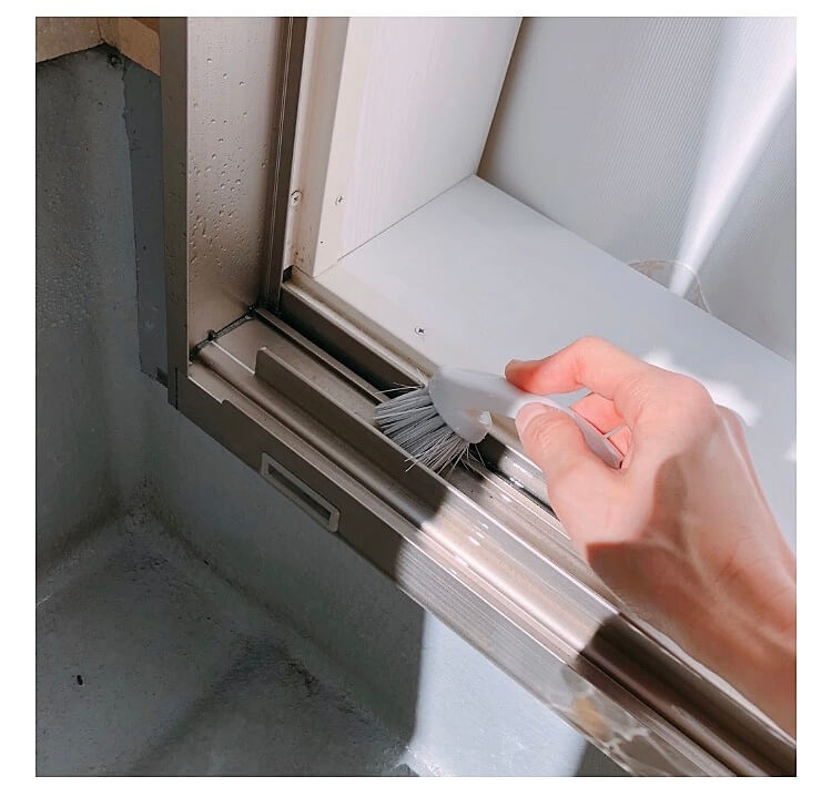 この先端ブラシで細かな出入口サッシもお掃除。