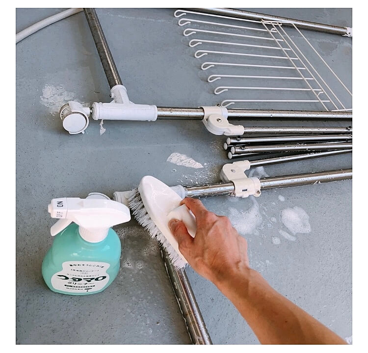 ついでに物干しもゴシゴシ洗い!