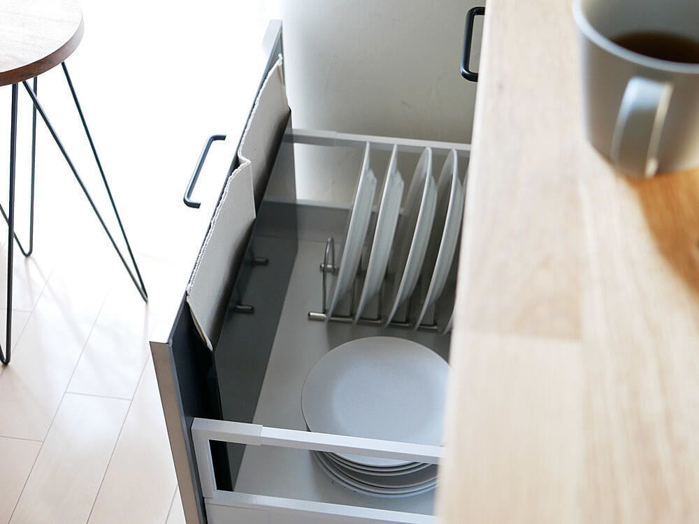 もちろん本体の上にはお皿やグラスなどを置くことが出来るので、今までの収納量とほぼ変わらずに収納が可能です。