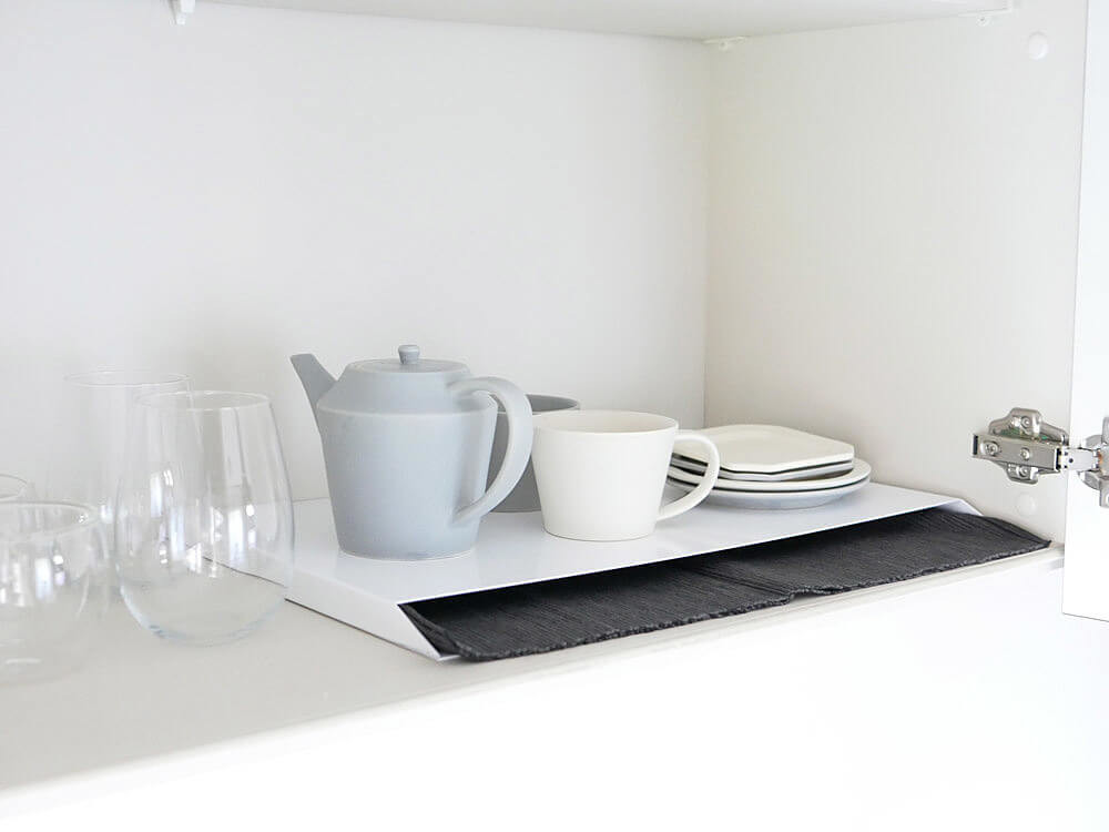 食器棚の中のデッドスペースを活用してスマートにランチョンマットを収納することが出来ます。