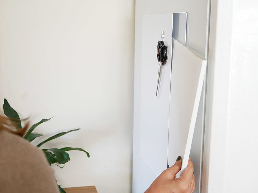 場所を取らない厚さ約2cmのスリムなケースは、付属のマグネットで冷蔵庫に付けたり、木ネジで壁に設置することも可能。多彩な設置が出来て「ここに置きたい」を叶えてくれます。